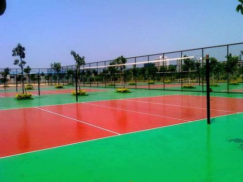 硅PU球場(chǎng):硅PU球場(chǎng)材料(SPU)是在PU球場(chǎng)材料的基礎(chǔ)上開(kāi)發(fā)研制出來(lái)的新一代球場(chǎng)鋪面材料。該材料是以聚氨酯(PU)材料與含有有機(jī)硅成分的材料科學(xué)地復(fù)合在一起,所生產(chǎn)出來(lái)的材料用在球場(chǎng)面層上,從根本上有效地解決了PU球場(chǎng)材料在專業(yè)性能、環(huán)保施工、使用壽命、日常維護(hù)等方面的不足,具有革命性的創(chuàng)新性能。由有機(jī)硅改性聚氨酯材料作為涂料,分多層(底涂、彈性層、加強(qiáng)層、面層)涂刮而成的新型塑膠球場(chǎng);具有上彈下彈結(jié)構(gòu)特征,屬于一種健康型專業(yè)彈性合成球場(chǎng)地面系統(tǒng)。